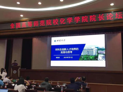 我院李念兵院长在全国高等师范院校化学学院院长论坛会上做了“本科生创新人才培养的实践与思考”的报告,针对本科生创新人才培养的实践与思考进行剖析讲解,介绍了必赢776net的基本情况、“兰华创新实践课程”的创新课堂结构,与大家分享了我院的主要特色和优秀成果。