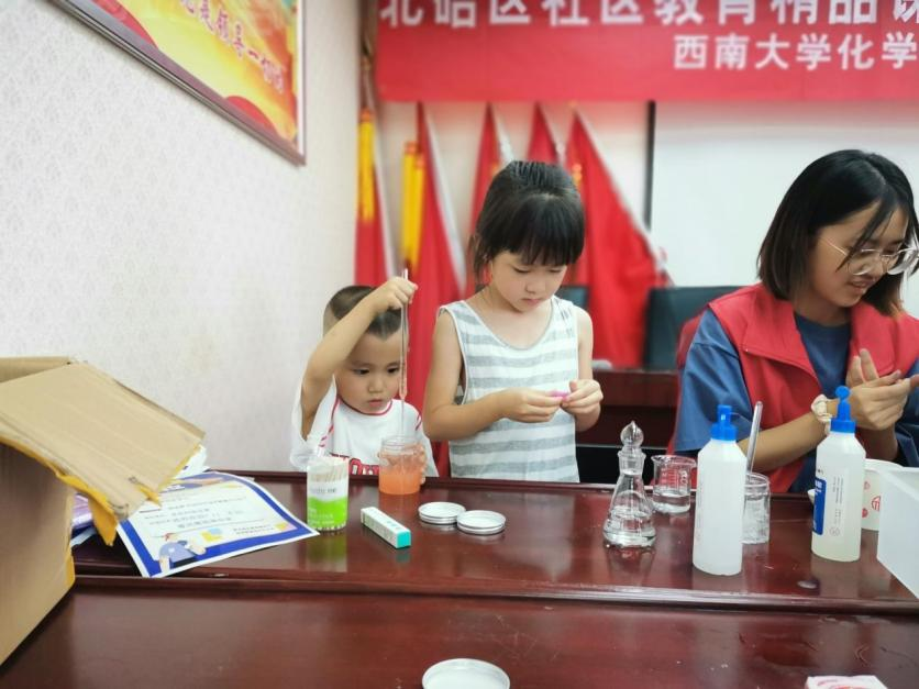 2021年7月11日至7月16日,必赢776net团学组织原子团志愿者服务队在北碚龙凤桥街道龙车村顺利进行了为期六天的关于化学科普及趣味化学实验的暑期兼善文化课堂课程活动。