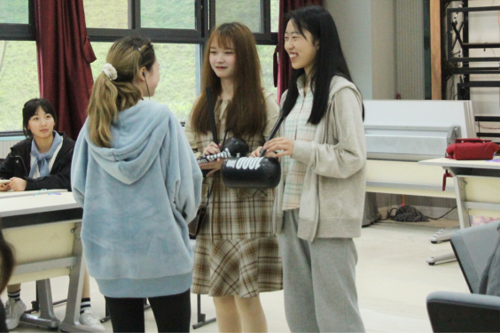来到了正式游戏环节,第一轮 “谁攻击了我”:一名同学站在前面,另外两名同学在其背后拿气锤攻击,被攻击的同学来判断是谁攻击了他。同学们精湛的演技、犀利的眼神与巧妙的心理战术,给游戏增添了不一样的乐趣。即使游戏人数有限,但没有加入游戏的同学同样也在享受着游戏带来的快乐。第三个游戏是“气鼓囔囔”:每组派出五名同学,将乒乓球从盛满水的水杯吹向下一个,接力次数最多的一组获胜。这个游戏难度系数较高,需要掌握吹气的力度与技巧。不过这可难不倒同学们,经过几次接力后,乒乓球的传递越来越快,大家也越来越有默契。到了最后一个游戏“你画我猜”,在这个游戏中大家脑洞大开,展示出怪诞的画风与惊人的理解能力,让活动气氛更加活跃。