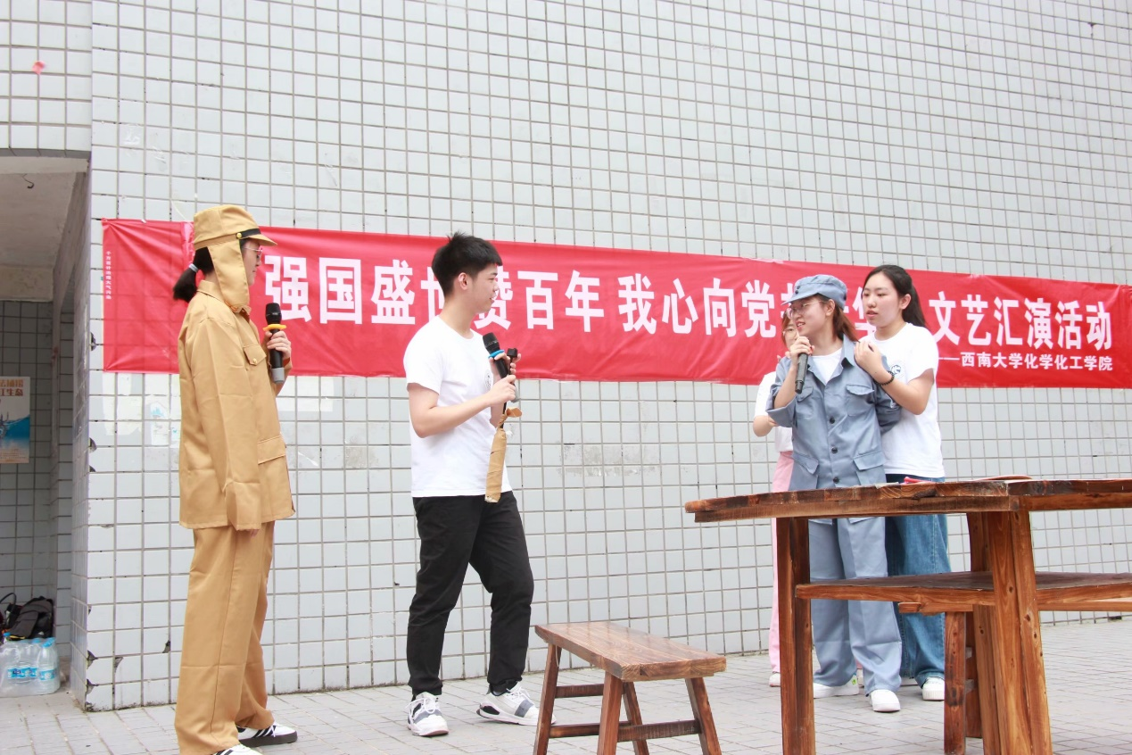 载歌载舞齐相聚,爱国爱党共欢欣。为献礼中国共产党成立100周年,将文艺节目带进乡镇,必赢776net党史学习实践团于7月15日来到重庆市合川区狮滩镇,开展“强国盛世赞百年,我心向党共芳华”主题文艺汇演活动。