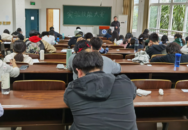 1.组织实验技能大赛:结合实验教学的特点,为了检验实验教学的效果,10月23日,组织全院学生参加第七届实验技能大赛,参赛人数400多人,通过初赛笔试考试(内容包括实验室安全,实验基本操作,实验技能,实验数据及实验结果分析),涵盖了化学四大基础课的实验知识,旨在立足基础,拓展学生实践知识。以赛促学,以赛助教。化学实验竞赛不仅能提高学生的理论知识,更具有激发实验探索的兴趣,转变学习方式等多方面教学意义,有助于提升考生对于实验技能的认知,鼓励学生将讨论,分析,归纳,总结相结合,提高创新与探究能力,为今后学生们投身科研与实践打下了坚实的基础。经过初赛选拔考试,选出68名成绩优异的选手,将参加11月8日的实做实验技能决赛。