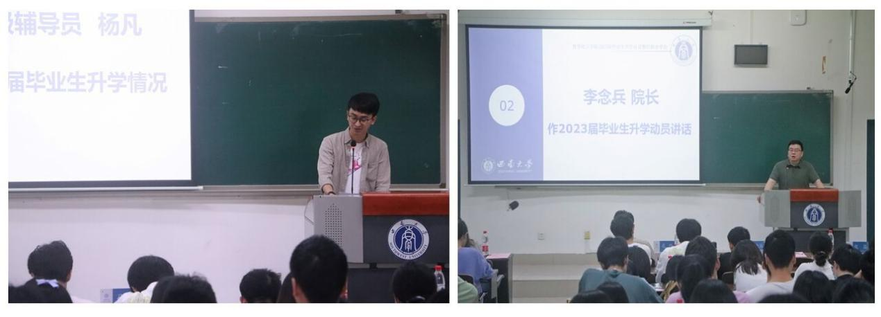 会议伊始,2018级辅导员杨凡老师介绍了2022届升学情况,分析了当今严峻的考研形势,希望2023届毕业生明确考研动机,确定、落实好考研规划。之后,李院长就2023届毕业生升学做动员讲话,他肯定了2022届升学取得的成绩,分析了当前考研形势,并对2023届毕业生表达了自己的鼓励与期望。